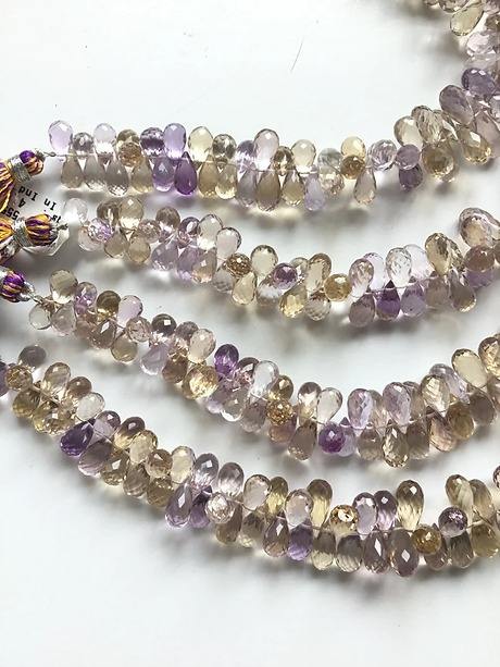 ลูกปัดหยดน้ำตาเหลี่ยมเพชรพลอย ametrine สำหรับสร้อยคอที่ไม่ซ้ำกันและการสร้างสรรค์ต่างหูในราคาไม่แพง