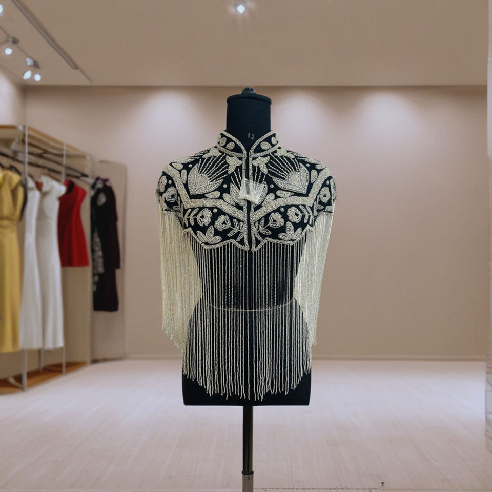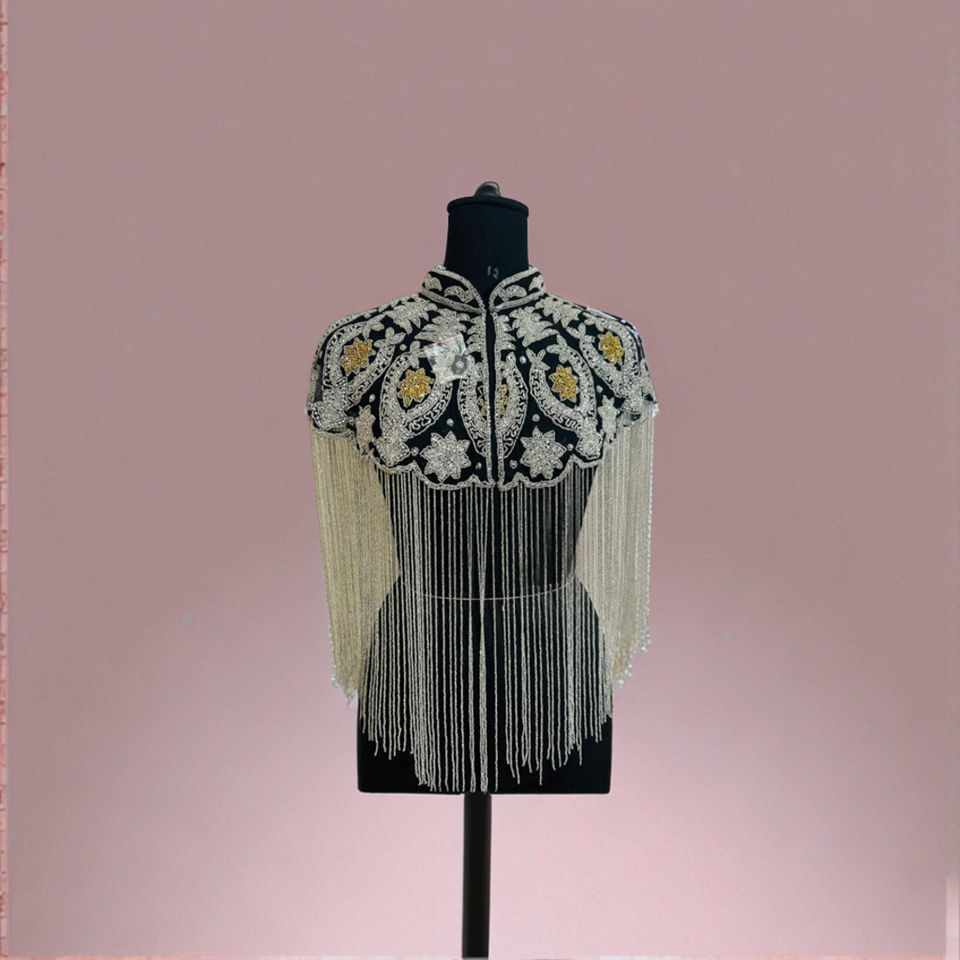 Export Quality Beautiful Beaded Sequined Burlesque Cape Festive Dress for Club Occasions and Festivals Fastens at Neck