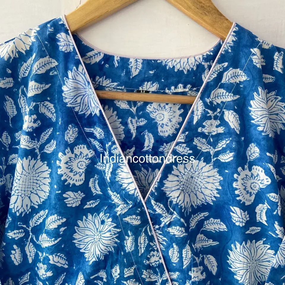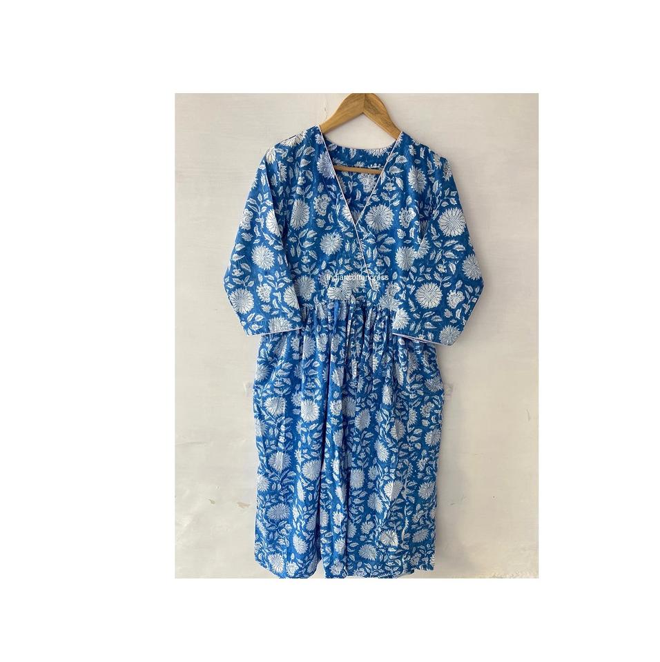 ชุดเดรสผ้าฝ้าย100% พิมพ์ลายสวยงามสไตล์หวานพร้อมรอบเอวธรรมชาติส่งตรงจากผู้จำหน่ายอินเดีย