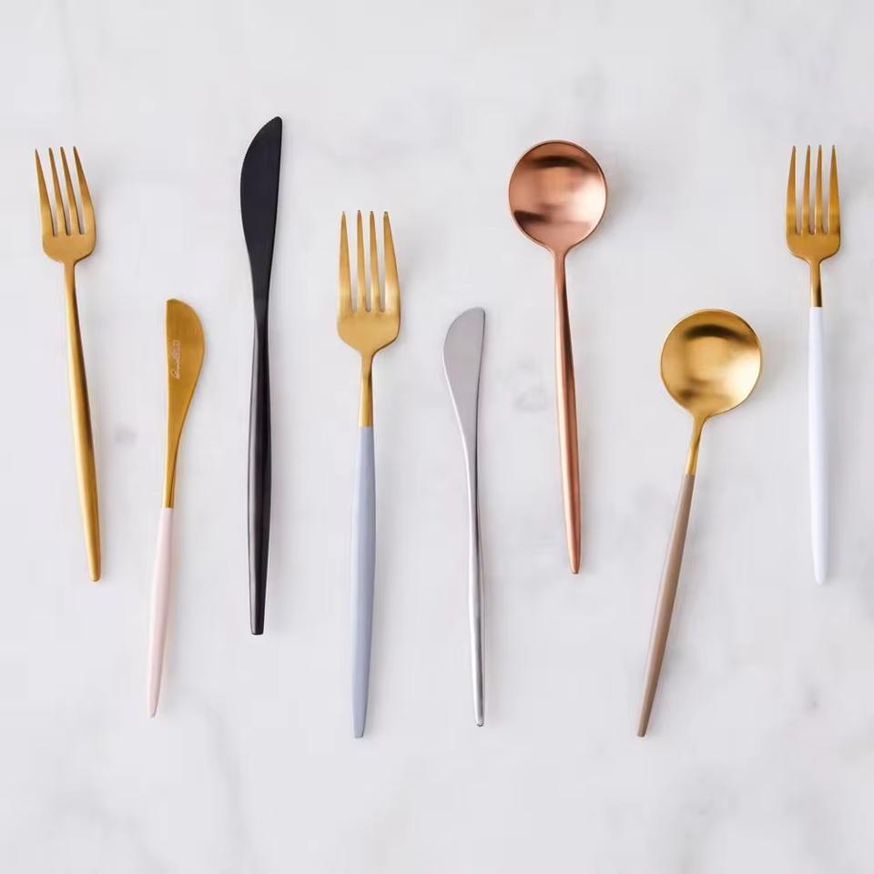 ชุดช้อนส้อมมีดสแตนเลสสำหรับรับประทานอาหารในโรงแรมชุดช้อนส้อมมีดออกแบบโลโก้ได้ตามต้องการ