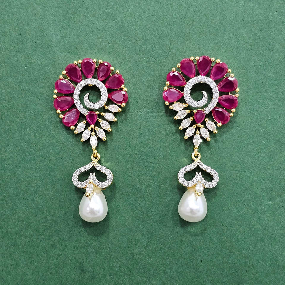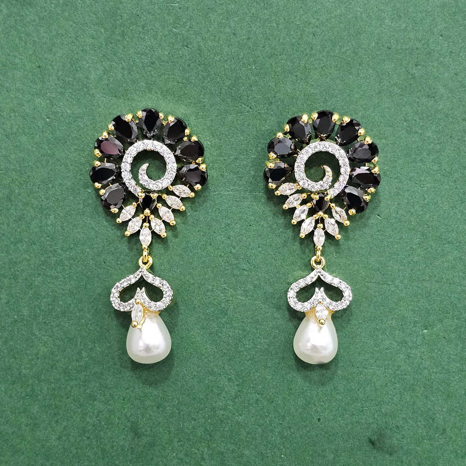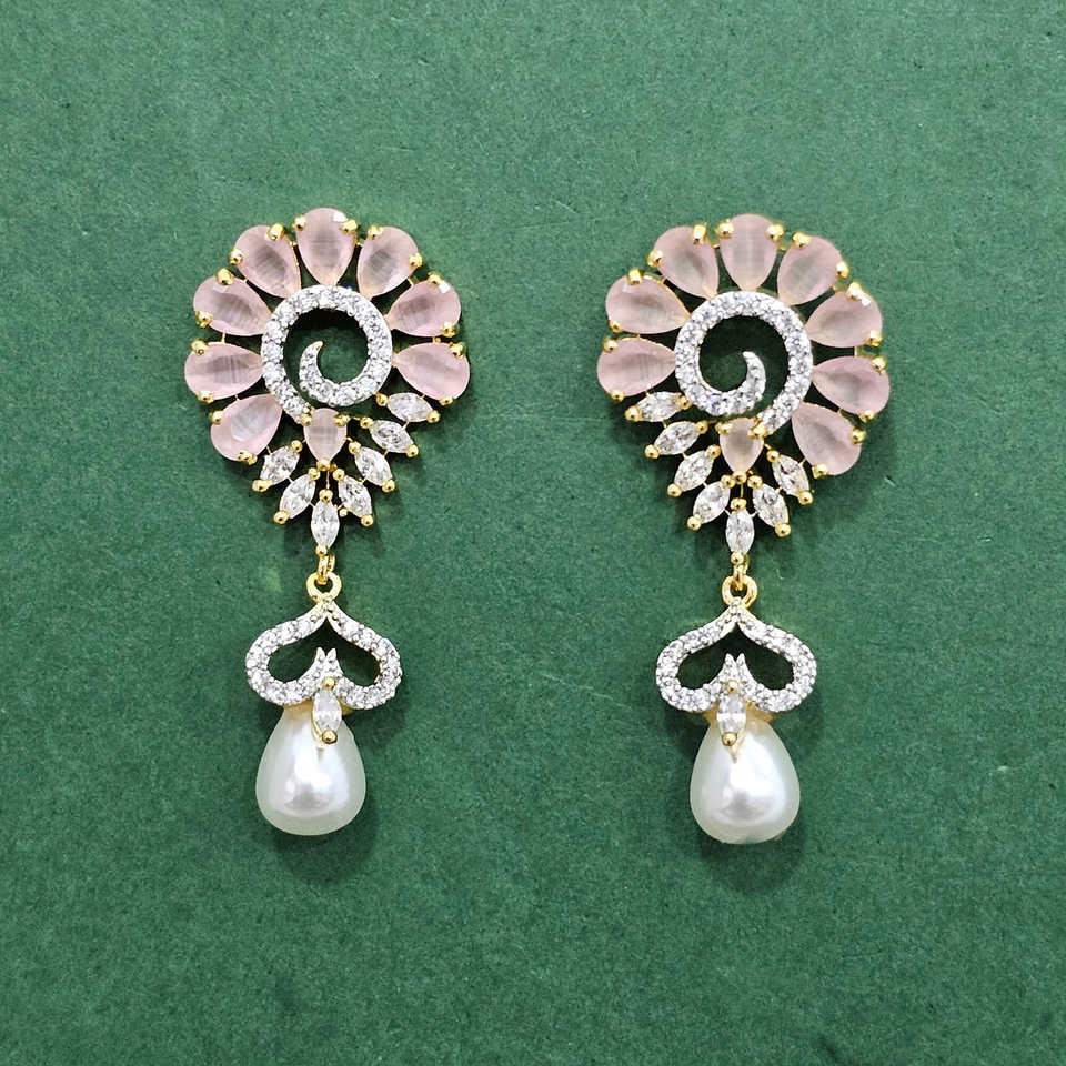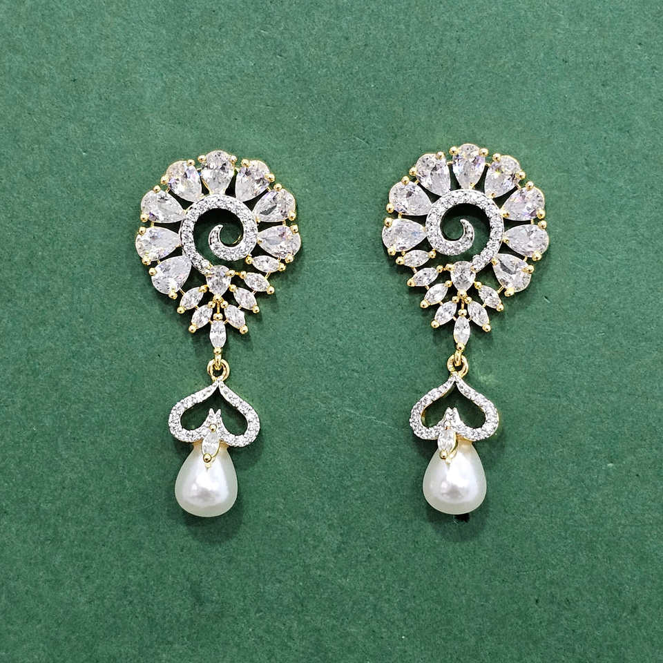 ต่างหูคลาสสิค CZ เคลือบ2โทน