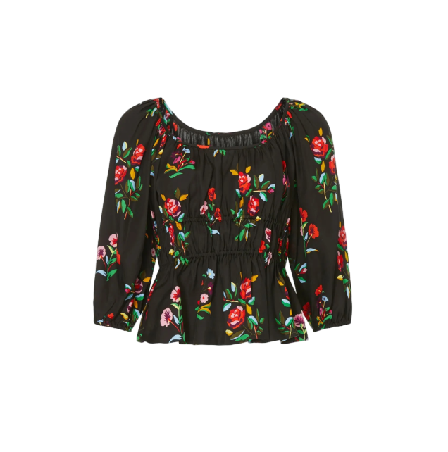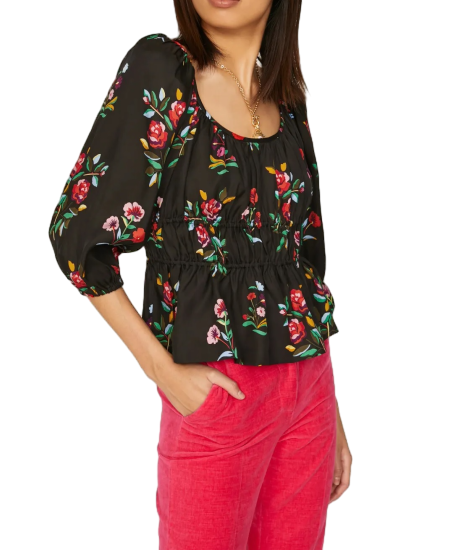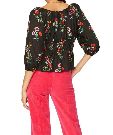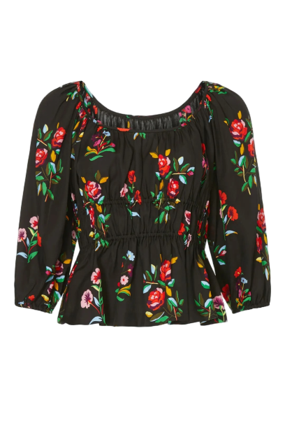 เสื้อตัวสั้นลายดอกไม้สีดำสำหรับผู้หญิงลำลองใส่เที่ยวนอกบ้านไปเที่ยววันหยุดสุดสัปดาห์