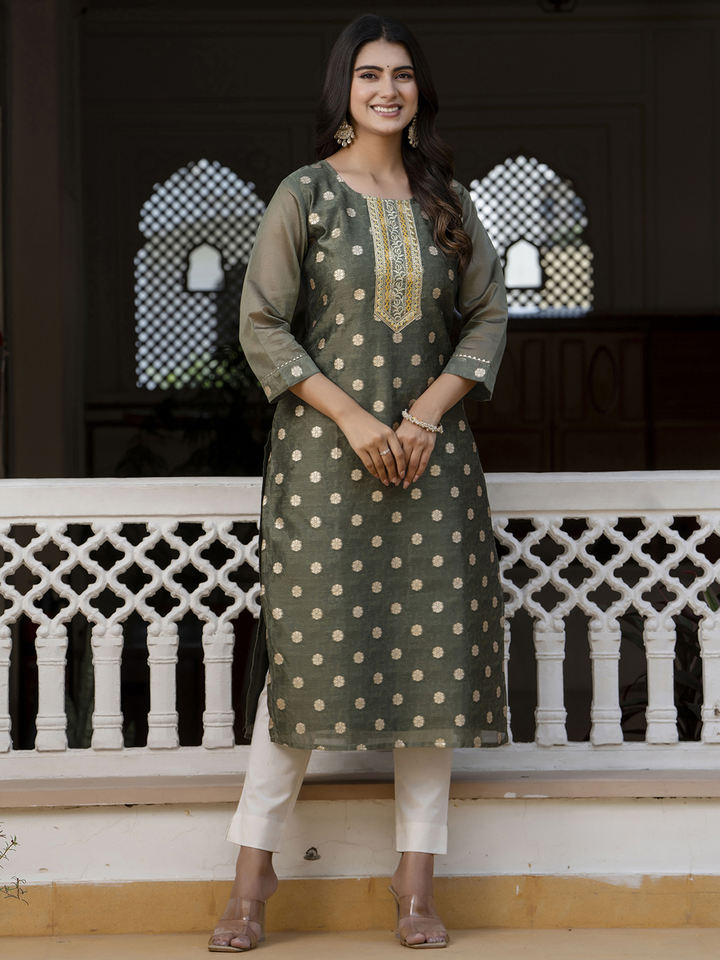 ชุดคุर्ตาผ้าไหมผสมปักลายคุณภาพส่งออก ดีไซน์หรูหราสำหรับผู้หญิง เหมาะสำหรับใส่ทำงานและใส่ในชีวิตประจำวัน มีจำหน่ายในราคาที่เหมาะสม