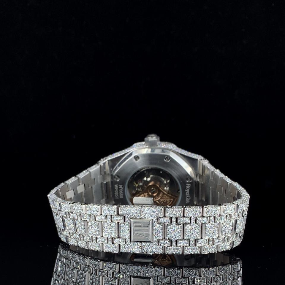 นาฬิกาเพชรโมอิสสีขาวพร้อมหินเจียระไนที่สวยงามและดีไซน์กันน้ำ