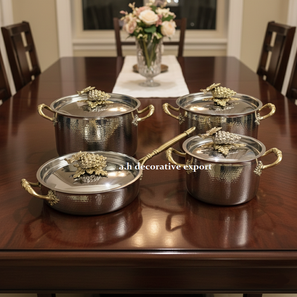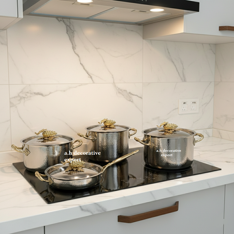 ชุดกระทะเหล็กกล้าไร้สนิมคุณภาพส่งออก ดีไซน์ทันสมัย ลายตอกแบบโบราณ เป็นมิตรกับสิ่งแวดล้อม พร้อมของตกแต่งระดับพรีเมียมสไตล์ยุโรป