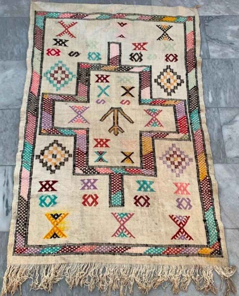 พรมขนสัตว์ถักมือปรับแต่งได้พรมขนสัตว์ถักมือสไตล์โมร็อกโก Kilim แบบดั้งเดิมสำหรับห้องนอน