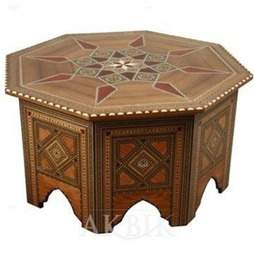 โต๊ะข้างทรงแปดเหลี่ยมไม้โมร็อกโกงานแฮนด์เมดคุณภาพส่งออก พร้อมลายฝังกระดูก สไตล์วินเทจแบบอาหรับ ราคาประหยัด