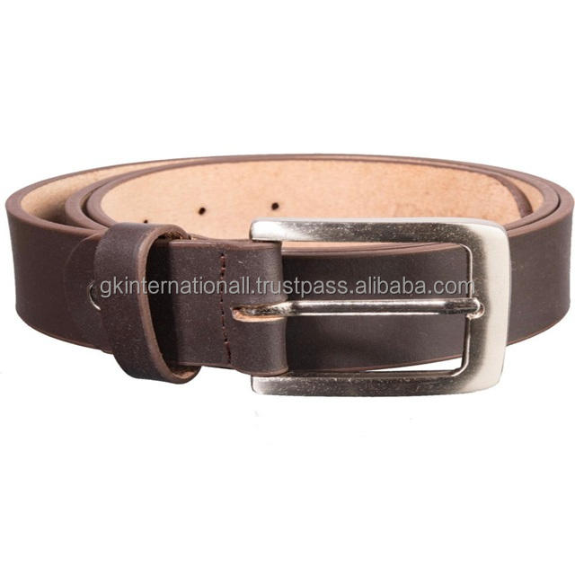 เข็มขัดลำลองหนังสีน้ำตาลสำหรับผู้ชายหัวเข็มขัดแบบกลัดเดี่ยวทำจากทองเหลืองโบราณปรับได้ทุกขนาด