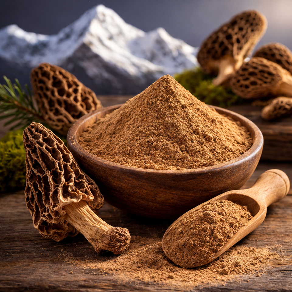 ผงเห็ดกูชชีมอเรลป่าหิมาลัยคุณภาพส่งออก ขายส่ง 100% บริสุทธิ์จากธรรมชาติ เก็บจากป่า ผงสำเร็จรูป จำหน่ายจำนวนมาก