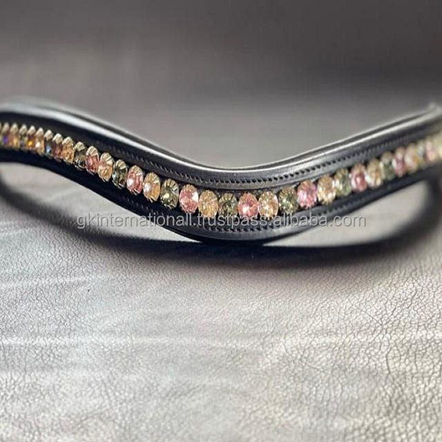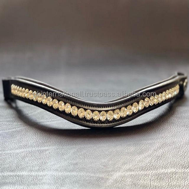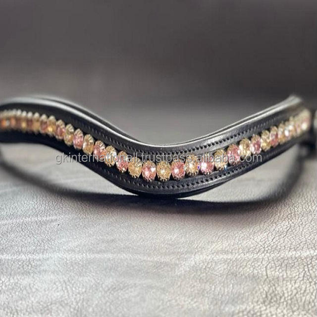 สายรัดหนังตกแต่งคิ้วม้าแฮนด์เมด,พลอยเทียมทรงกลมสีทองสายหนังเปล่า