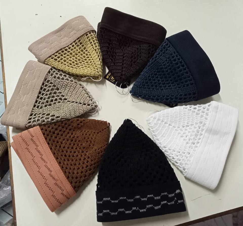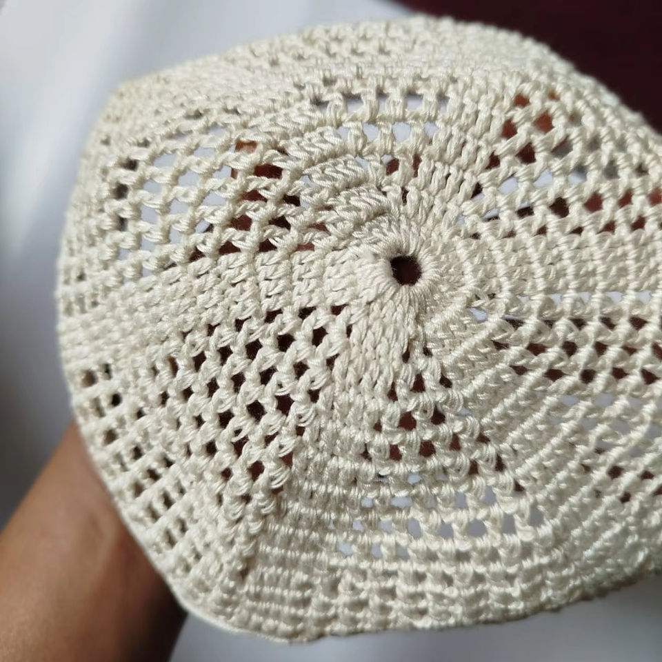 หมวกคูฟีคุณภาพส่งออกสำหรับผู้ชาย ถักมือ ปักลาย หมวกบีนนี่สำหรับละหมาดของชาวมุสลิม ผ้าฝ้ายพรีเมียม ขอบยางยืด หมวกคูฟีแบบมาซรี บังคลาเทศ
