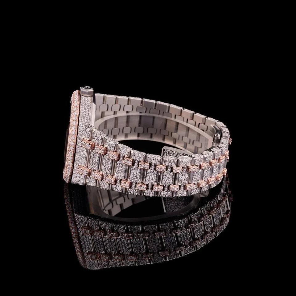 Export Quality Moissanite Diamond Rose Gold Iced Out Hip Hop Studded Automatic Movement Fashion Watch For Office Working Man L