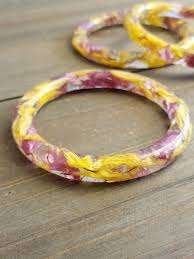 กำไลข้อมือสำหรับผู้หญิงทำจากเรซินใสลายใบไม้สีแดงและสีเขียว
