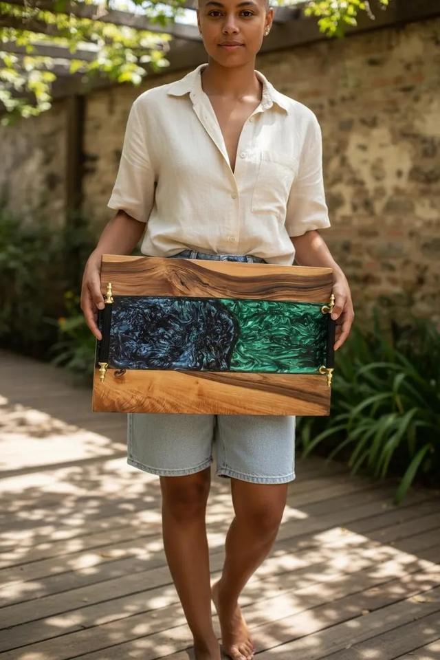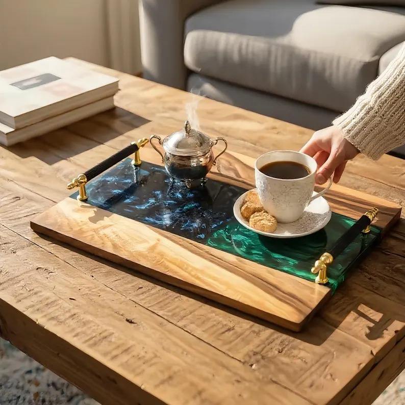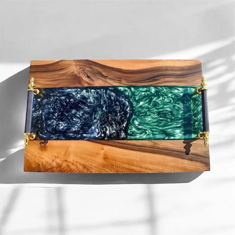 ถาดเรซิ่นและไม้คุณภาพส่งออก ดีไซน์หรูหรา สำหรับจัดระเบียบบนโต๊ะเครื่องแป้ง โต๊ะทำงาน ห้องนอน และตกแต่งบ้าน ราคาโรงงานโดยตรง