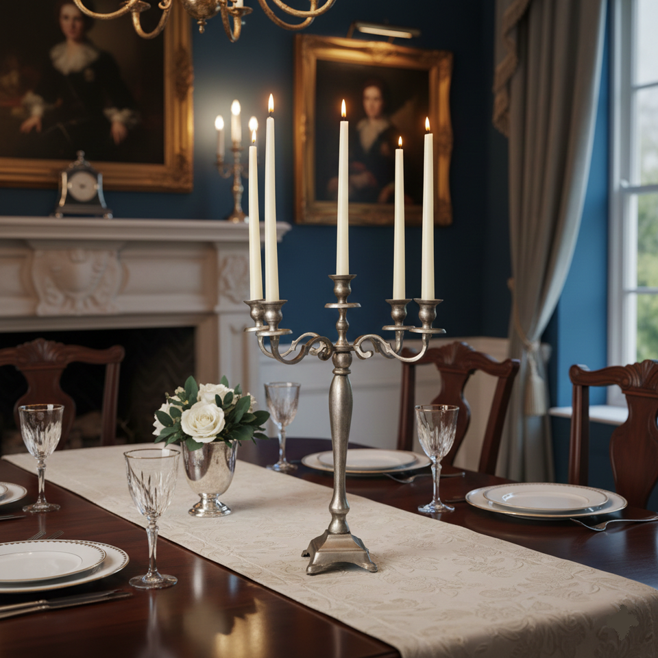 เชิงเทียนเงินคุณภาพส่งออก 5 แขน สำหรับตกแต่งโต๊ะงานแต่งงาน งานเลี้ยงฉลอง ทำด้วยมือ ใช้สำหรับตกแต่ง