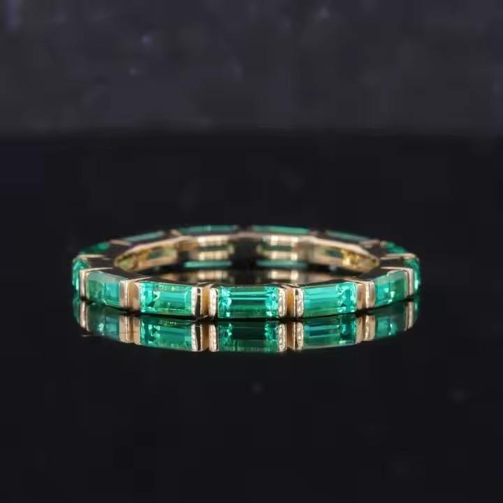 แหวนเพชรโมอิสซาไนต์ทรงเหลี่ยมมรกตทองคำแท้ 14K คุณภาพส่งออก ดีไซน์คลาสสิกสีเขียวสวยงาม เหมาะสำหรับงานแต่งงานและงานหมั้น มีจำหน่ายแล้ว