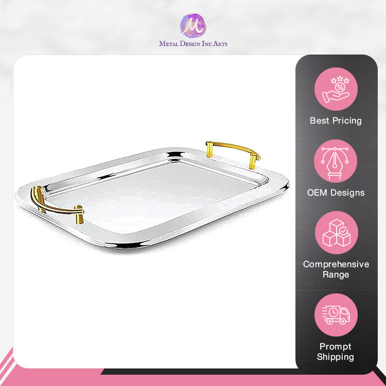 ชื่อผลิตภัณฑ์:ถาดเสิร์ฟสแตนเลสพร้อมด้ามจับสีทอง