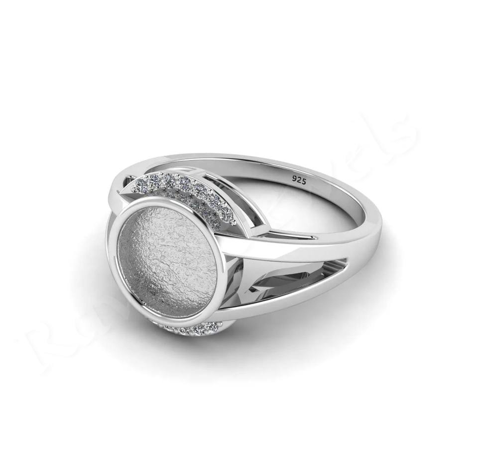 925แท้เงินสเตอร์ลิง8มม. รอบฝาเปล่าการตั้งค่าแหวนผู้หญิงที่ดีสำหรับอัฐิและเรซิ่นเติมนมแม่เครื่องประดับ