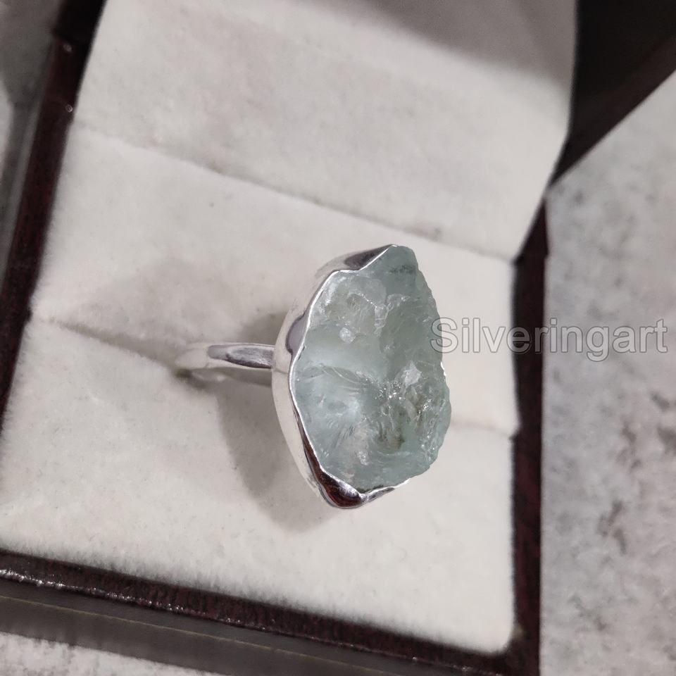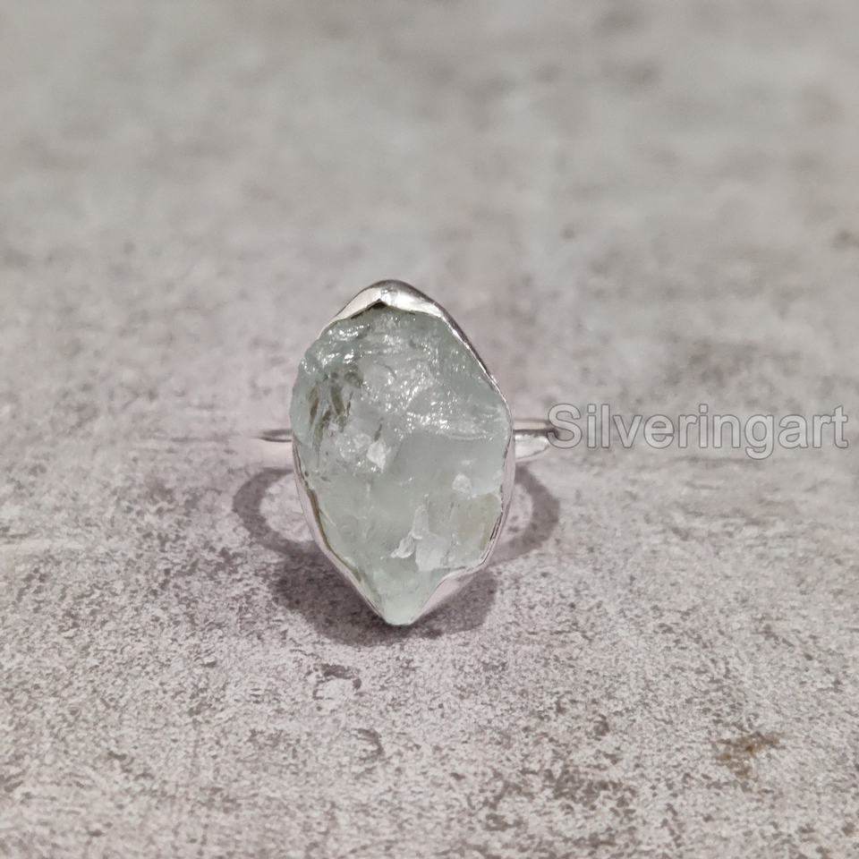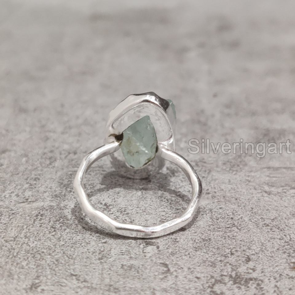 ส่งออกเครื่องประดับหินหยาบเครื่องประดับแหวนผู้หญิงพลอยสีฟ้าพลอยสีธรรมชาติพลอยเดือนมีนาคม925ทำด้วยค้อนแหวนเงินสเตอร์ลิง