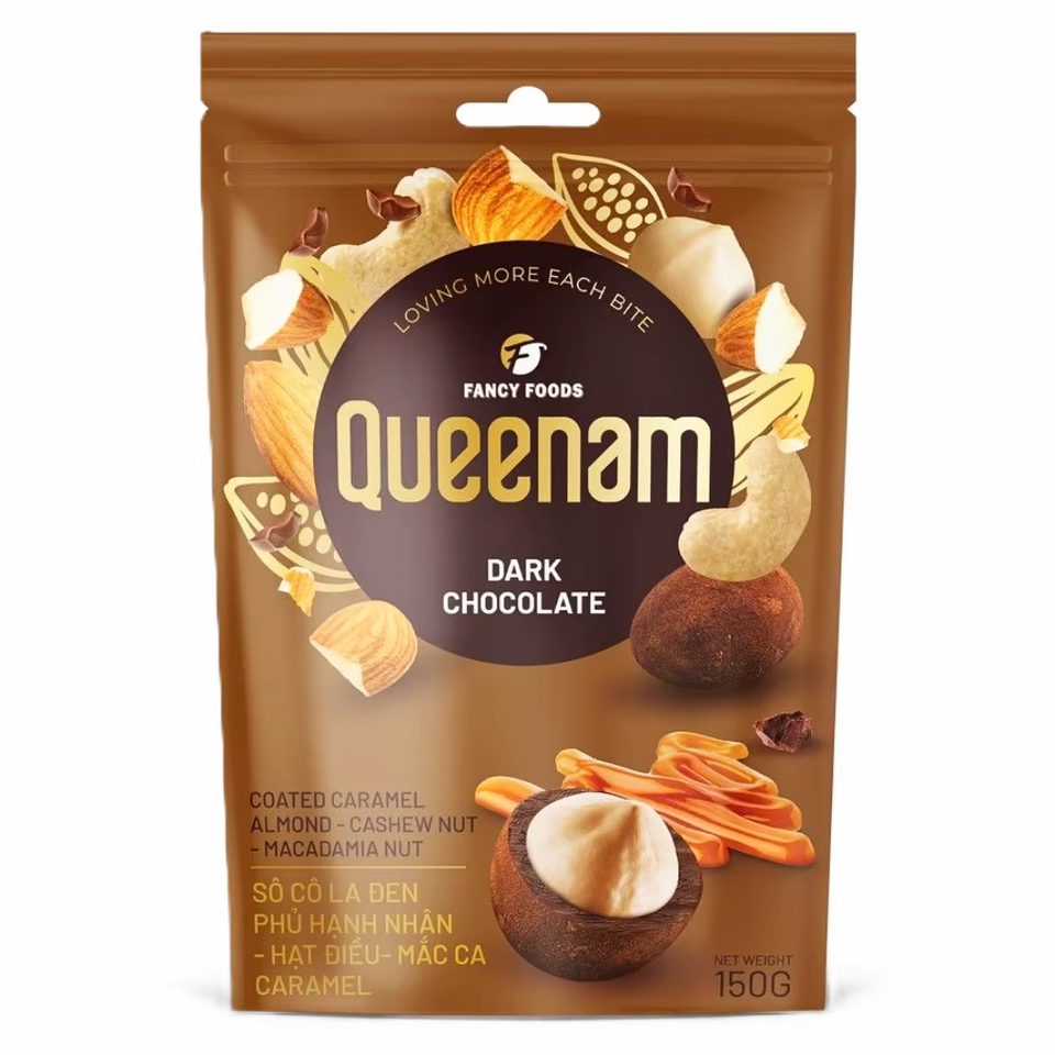 ขนมเม็ดมะม่วงหิมพานต์แมคคาเดเมีย150กรัมเคลือบช็อคโกแลตเข้มคาราเมลอัลมอนด์เม็ดมะม่วงหิมพานต์เคลือบดาเมีย
