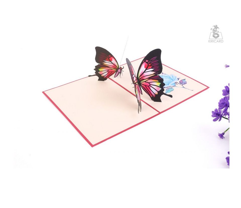 Export Top Product Couple Butterflies Pop Up Card (Red) Spring Animals Made in Vietnam High Quality Cheap Price Handicraft