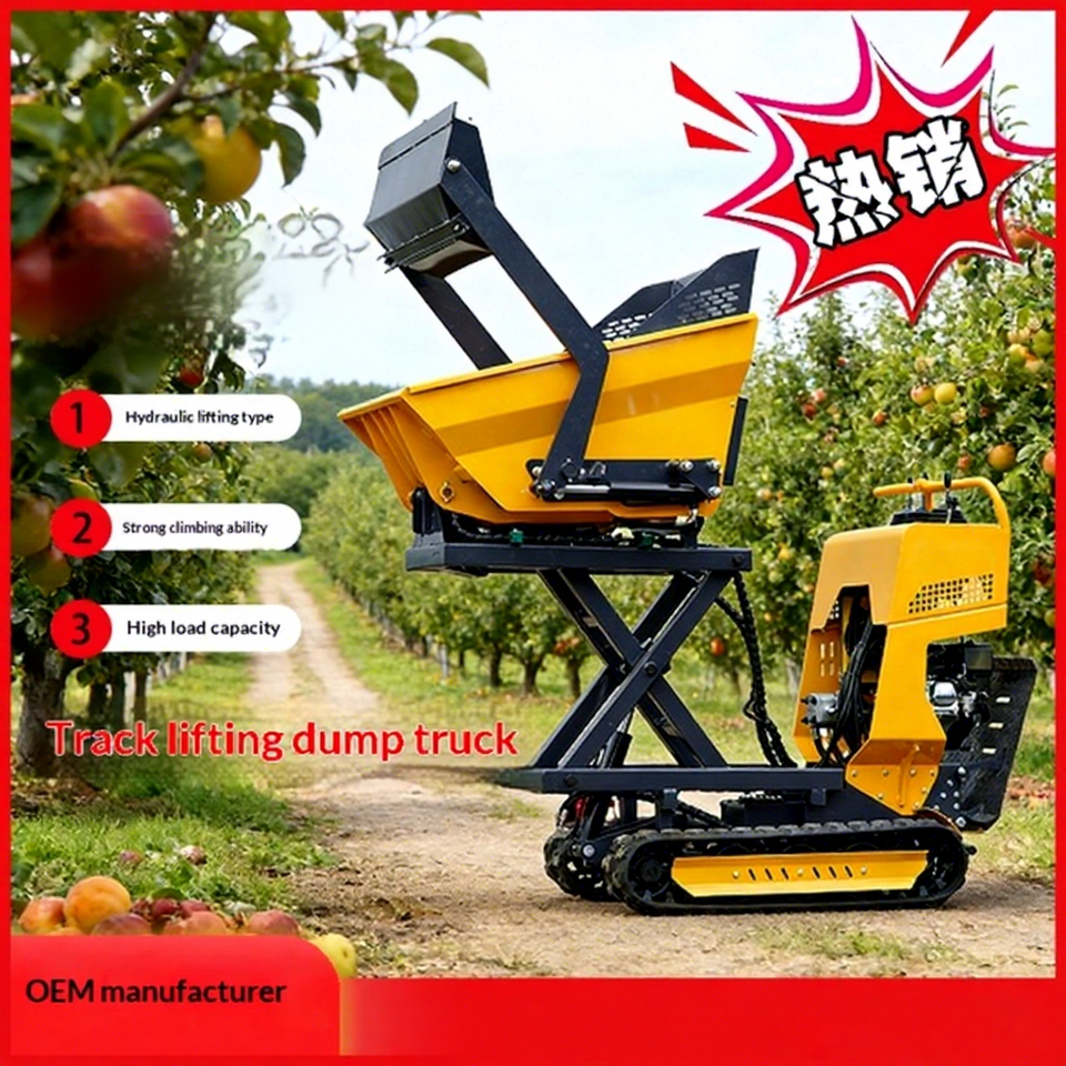 รถดัมพ์ตีนตะขาบแบบไฮดรอลิกขนาดเล็ก ยี่ห้อ Zongang บรรทุกได้ 500 กก. สำหรับงานก่อสร้าง สวนผลไม้ และการเกษตร
