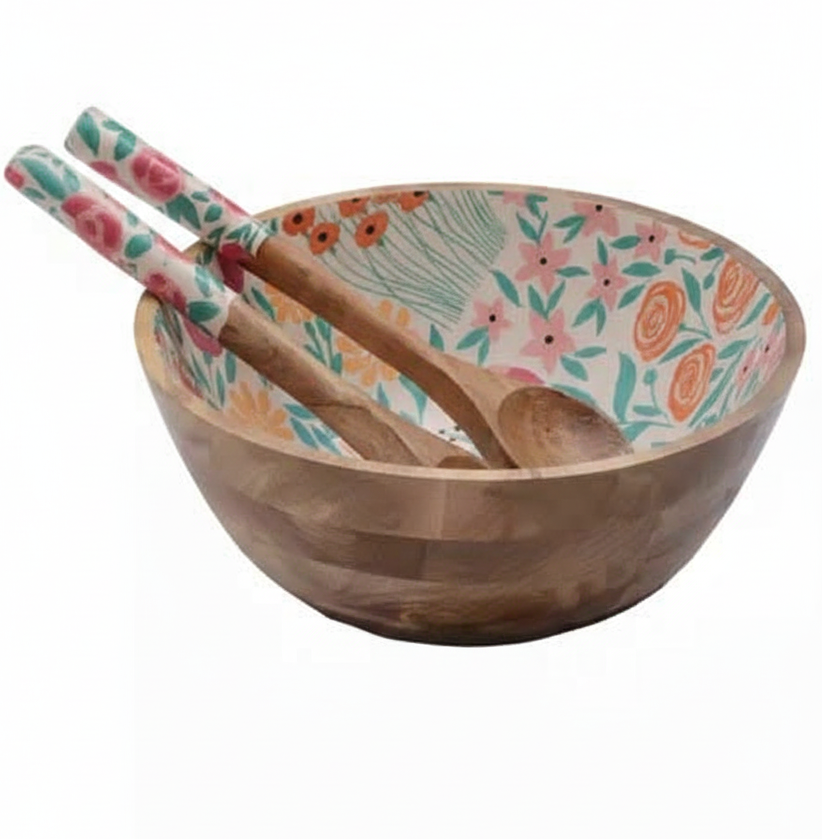 ชามไม้หรูหราเป็นมิตรกับสิ่งแวดล้อม พร้อมเคลือบภายในและช้อนเสิร์ฟ สำหรับใช้ในบ้านและงานเลี้ยง