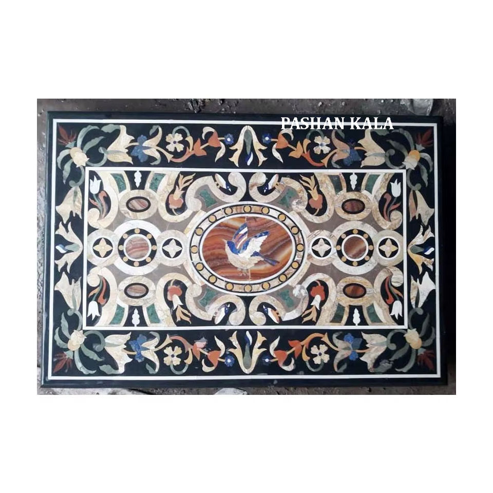 ผู้ส่งออกและผู้จัดจำหน่ายโต๊ะหินอ่อนสีดำทรงสี่เหลี่ยมผืนผ้าฝังลายหินอ่อนคุณภาพสูง งานแฮนด์เมด สำหรับใช้ในบ้าน