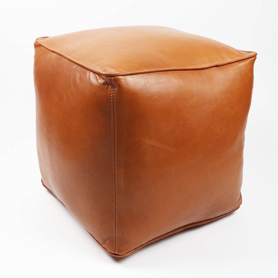Light Brown leather ottoman:Luxury leather ottoman