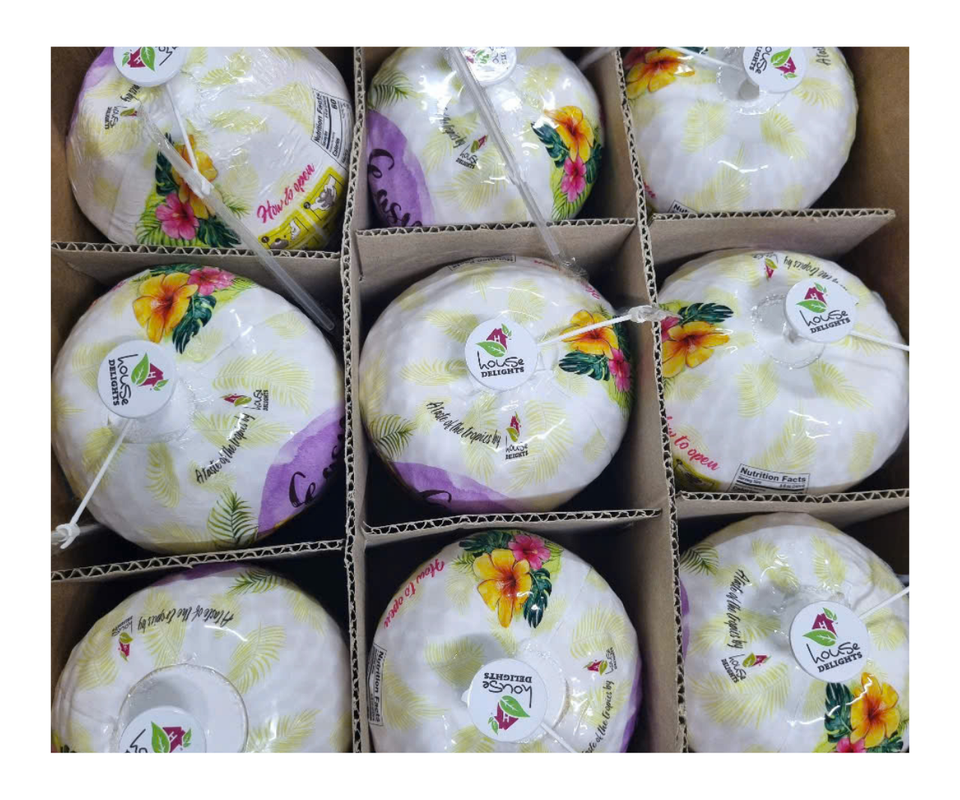 มะพร้าวหนุ่มเปิดง่ายด้วยหลอดลูกมะพร้าวสดผลไม้เขตร้อน/เวียดนาม
