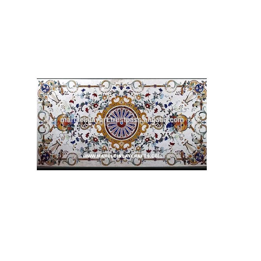 โต๊ะรับประทานอาหารฝังหินอ่อนสีขาวรูปทรงสี่เหลี่ยมผืนผ้าออกแบบด้วยดอกไม้สำหรับตกแต่งบ้านและโรงแรม
