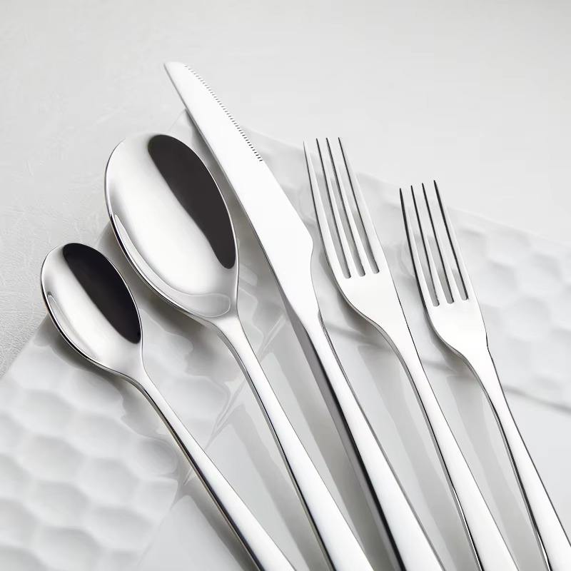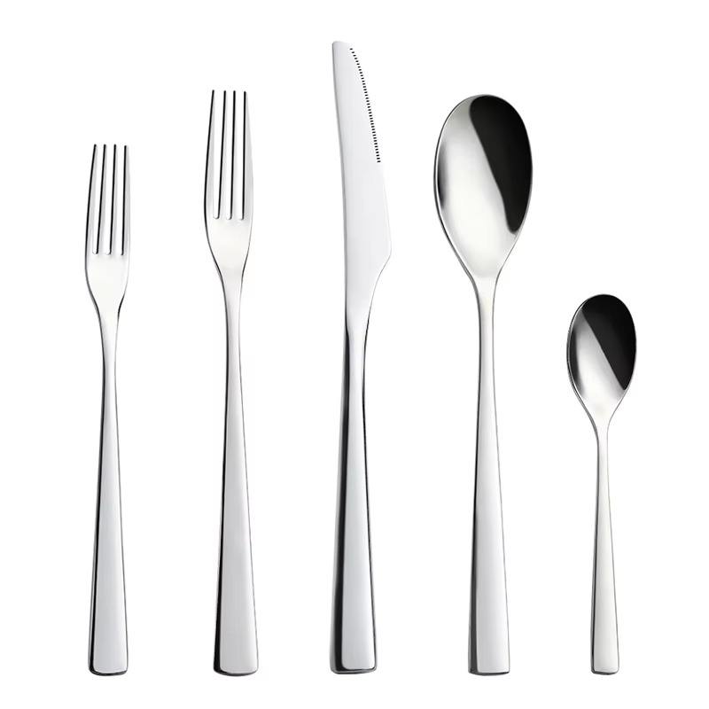 ชุดรับประทานอาหารเย็น5ชิ้น/เซ็ตสีเงินชุดเครื่องใช้บนโต๊ะอาหารทำจากสแตนเลสขัดเงาทำจากโลหะ