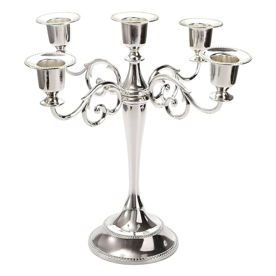 Exportish เชิงเทียนที่มีคุณภาพในอุตสาหกรรมโคมไฟเชิงเทียนชุบนิกเกิลป้องกันโลหะเหล็กสำหรับงานแต่งงานเชิงเทียน