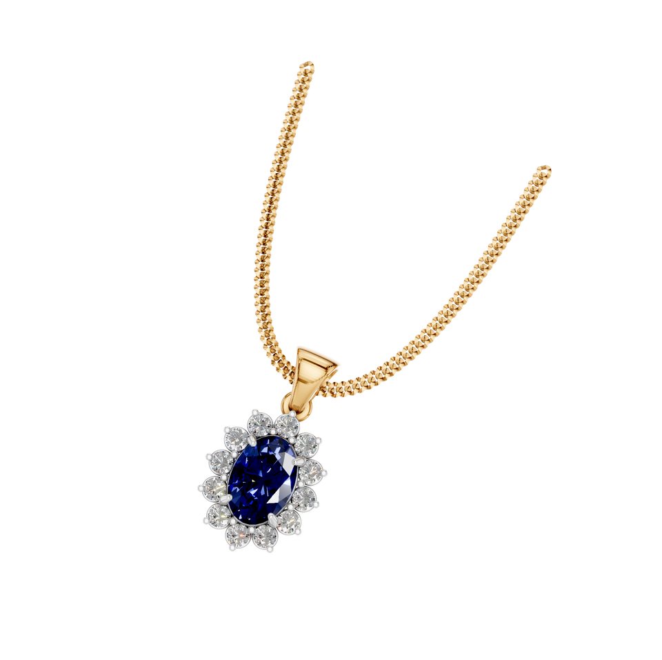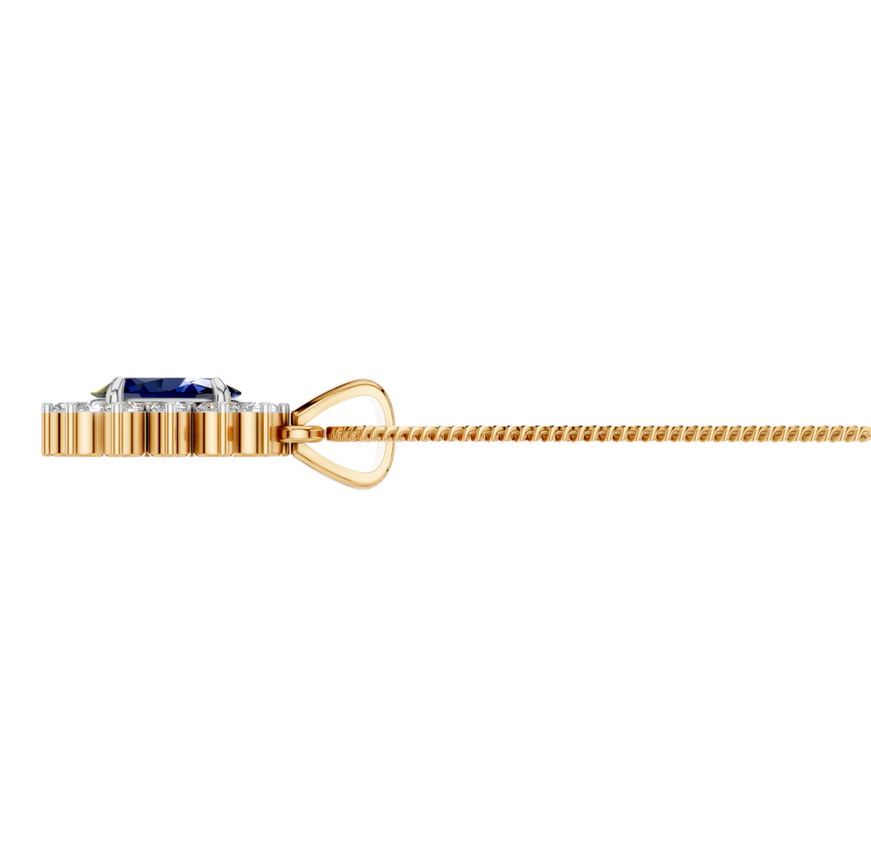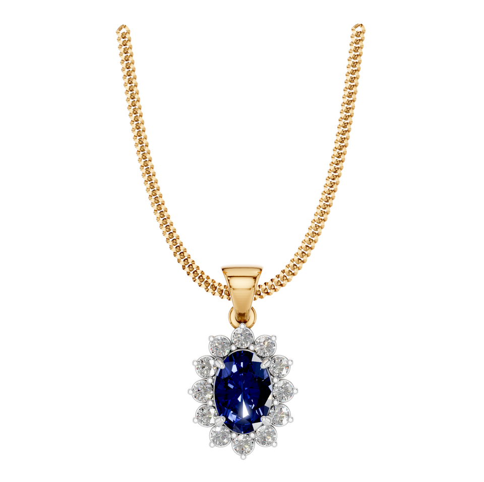 จี้แซฟไฟร์โซลิแทร์1กะรัตประดับทอง14K พร้อมด้วยรัศมีเพชรเป็นประกาย-ดีไซน์หรูหราเหนือกาลเวลา