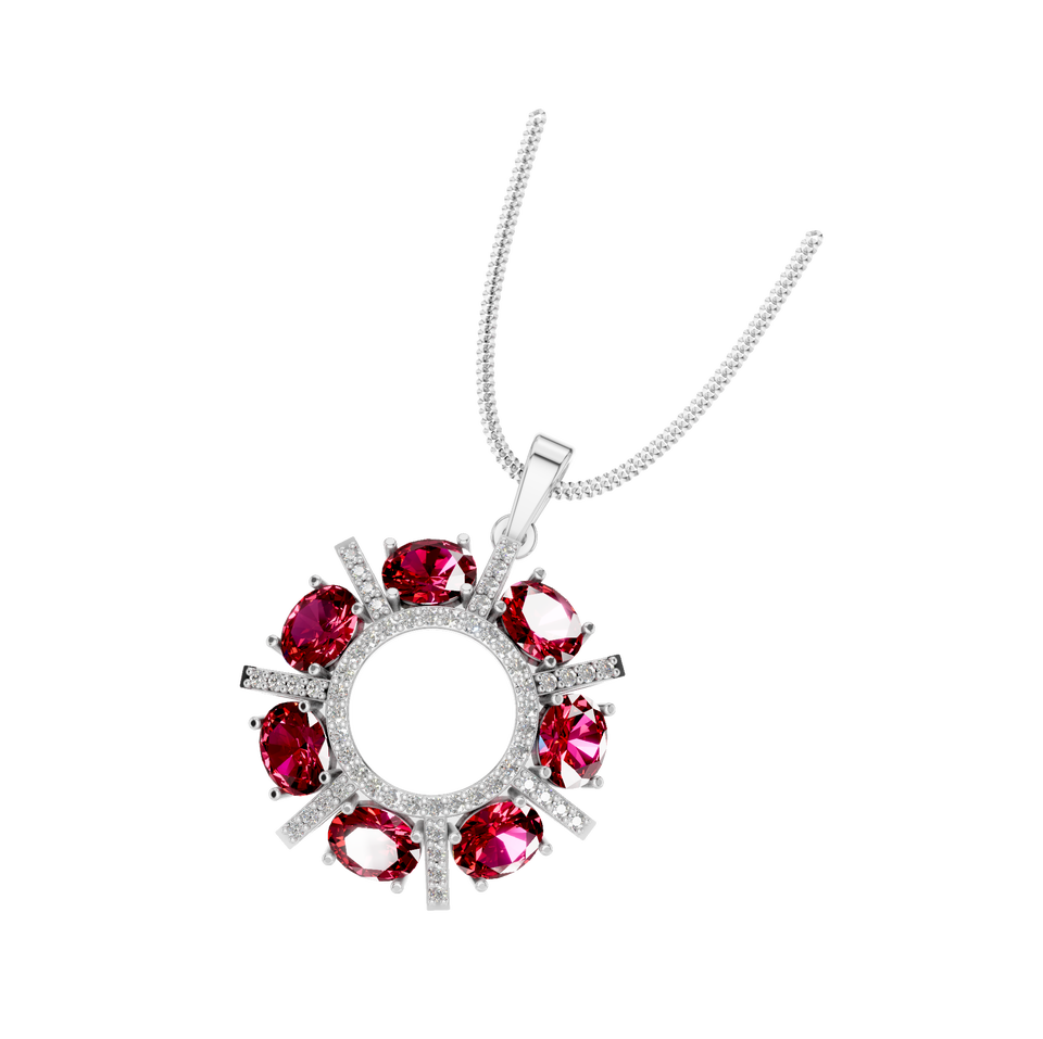 Style:Exquisite Natural Red Ruby Gemstone Circle Pendant Necklace