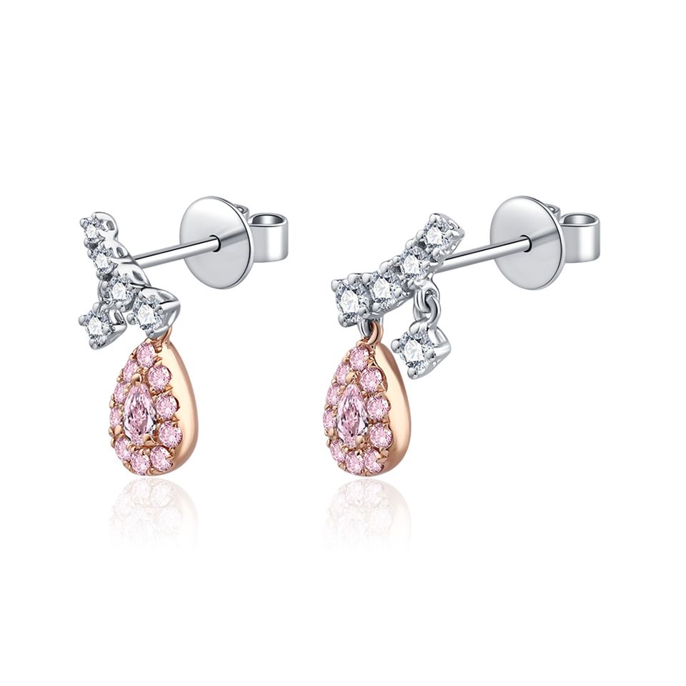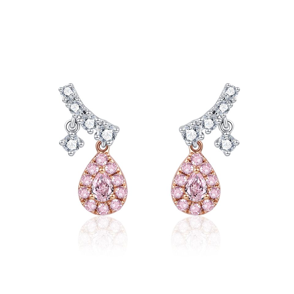 ต่างหูสตั๊ดเพชรสีชมพูแท้สีขาวและสีโรสโกลด์สวยงาม18K สำหรับผู้หญิง