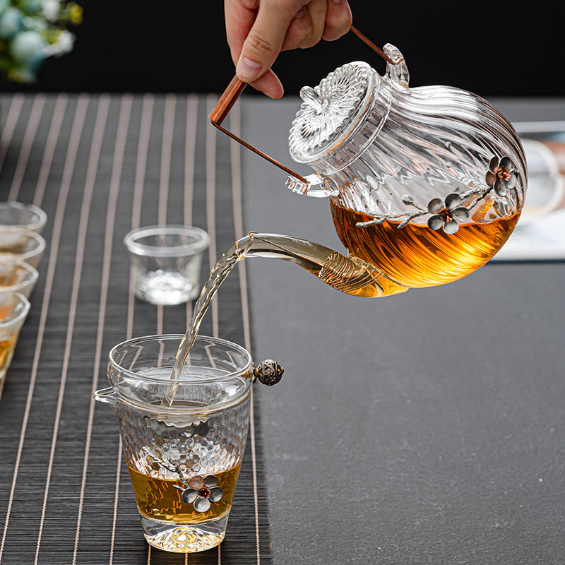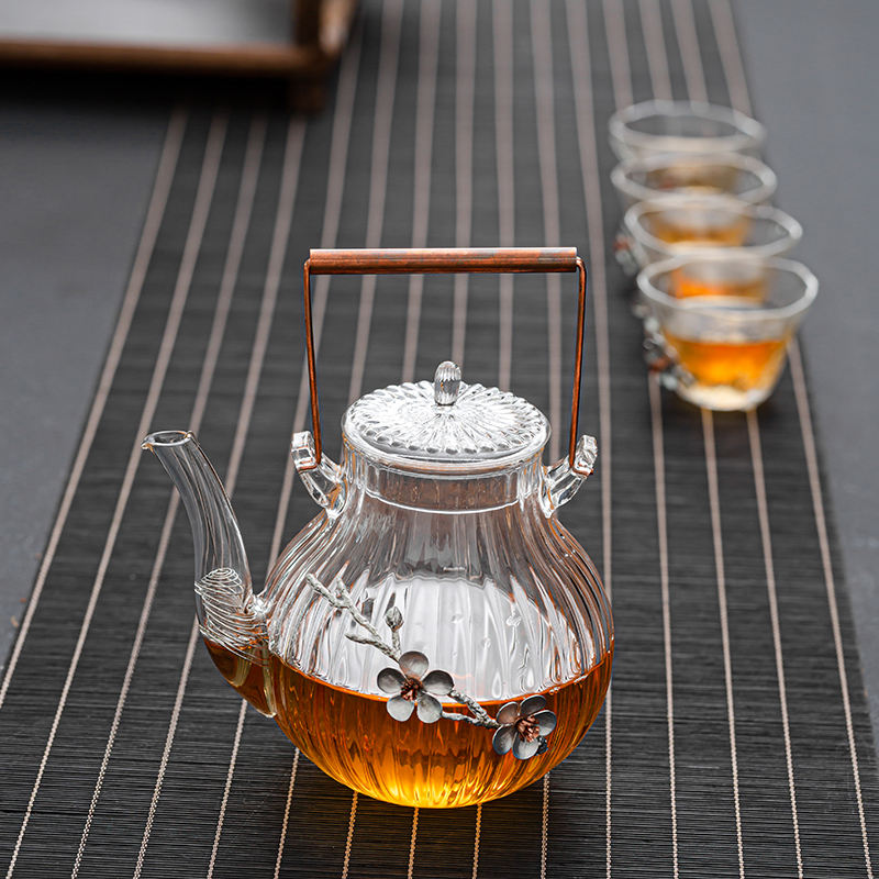ชุดกาน้ำชาจีนขนาด725มล. ชุดถ้วยชาและกาน้ำชาลายดอกไม้