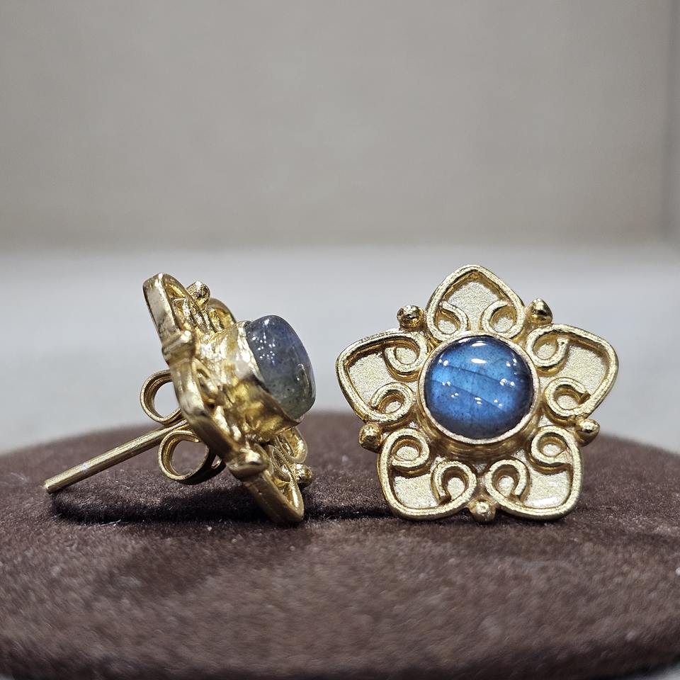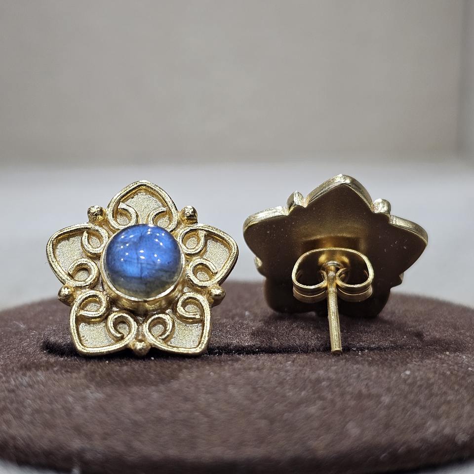 Exquisite 925 Sterling Silver Classic Handmade Earrings Gold-Plated Labradorite Gemstone Diamond Excellent Fine Piercing Jewelry