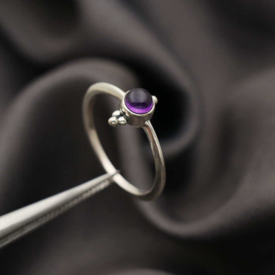 แหวนพลอยสีเงินสเตอร์ลิง925ประณีตทำด้วยมือพลอยอเมทิสต์เทอร์ควอยซ์ธรรมชาติเครื่องประดับคุณภาพคลาสสิกสำหรับงานแต่งงาน