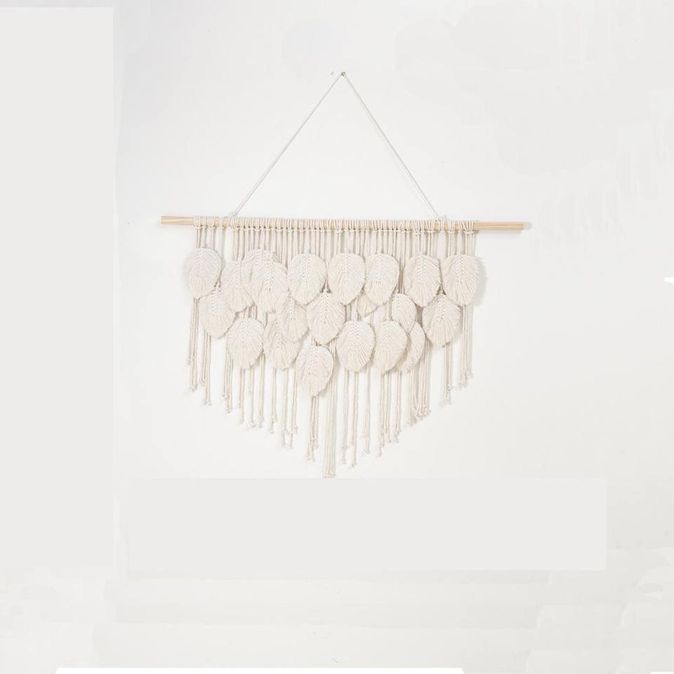 พรมแขวนผนังลายใบไม้สไตล์โบฮีเมียนแบบประณีตใช้ตามสั่งสำหรับแขวนห้องนอนในบ้านตกแต่งด้วยใบไม้ทอสำเนียง
