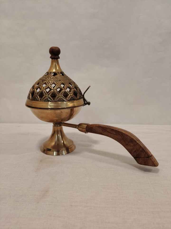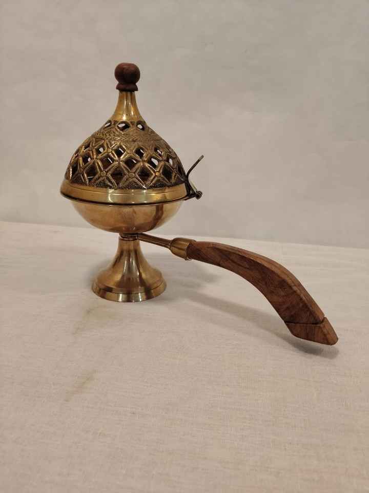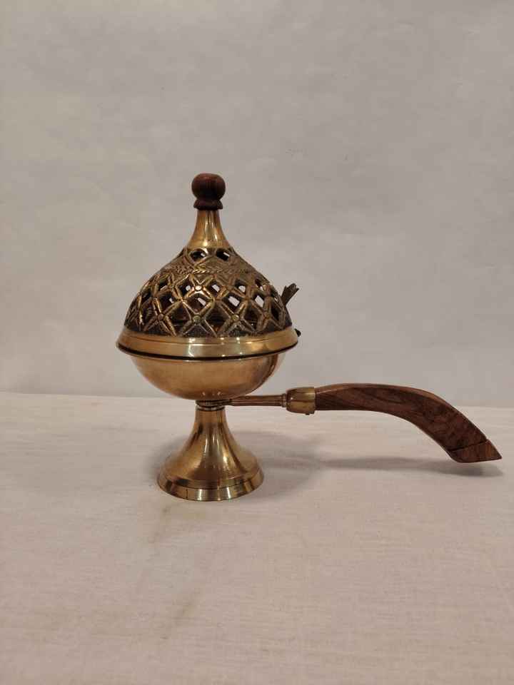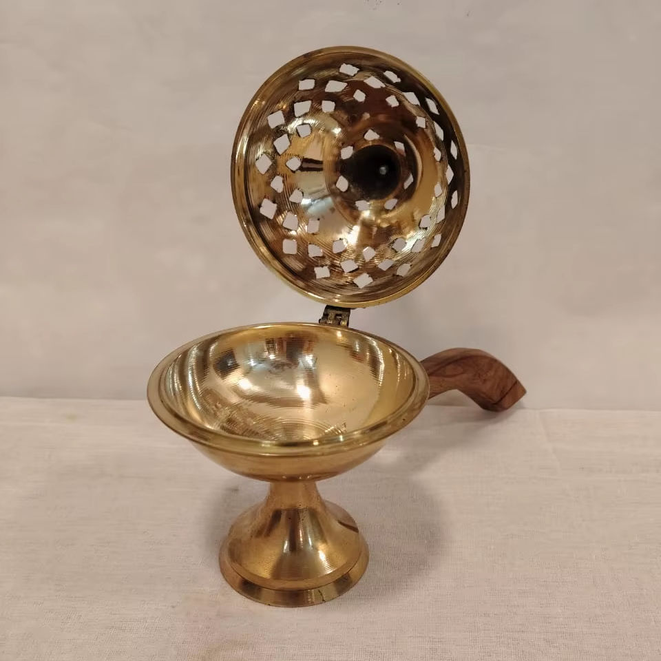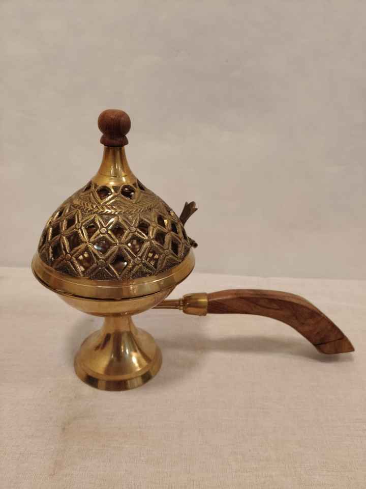 เตาเผากำยานทองเหลืองแบบมือถือ งานฝีมือ ROSHAN ดีไซน์อินเดีย/ทิเบต/ญี่ปุ่น ทำด้วยมือ ใช้งานได้ยาวนาน