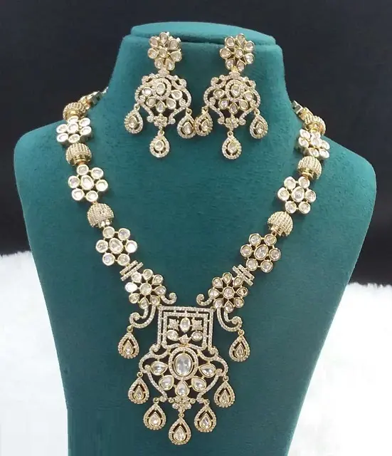 ชุดเครื่องประดับเจ้าสาวแสนสวยสร้อยคอและต่างหูเหมาะสำหรับวันแต่งงานเสน่ห์ในราคาที่ไม่แพงจากอินเดีย
