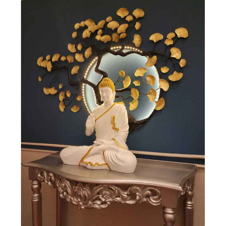 พระพุทธรูปประณีตพร้อมต้นไม้โลหะ LED ชุบผงเคลือบ ทนทาน สวยงาม เหมาะสำหรับตกแต่งผนัง