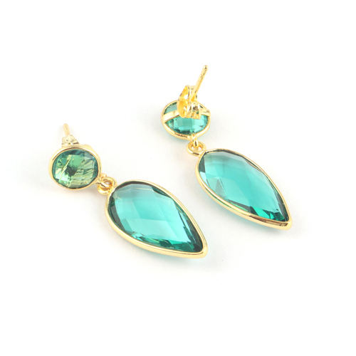 ต่างหูหินควอทซ์ชุบทองไฮโดรควอทซ์เจียระไนสองชั้นสำหรับใส่เครื่องประดับ