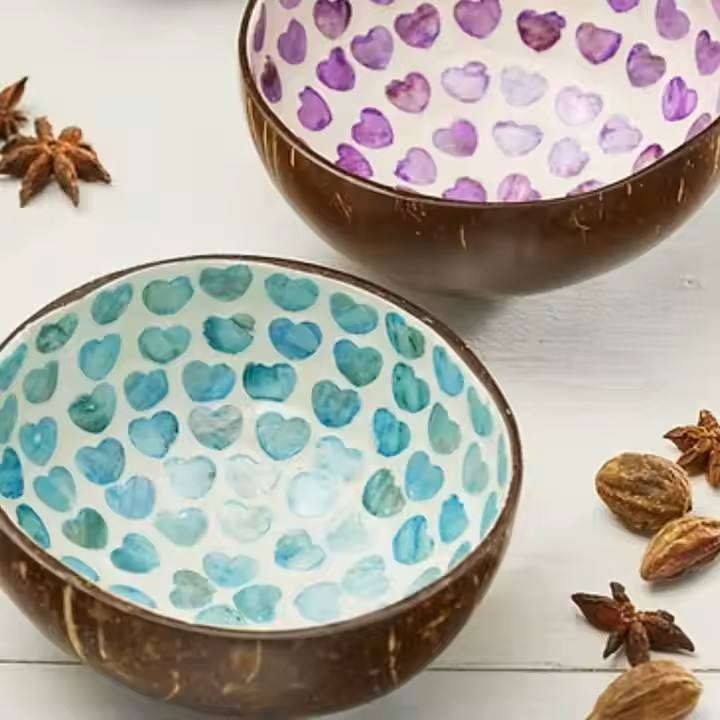 Exquisite Design 2025 Organic Coconut Bowl Combine Mosaic Mother of Pearl Inner MOP Inlay Coconut Shell Bowl