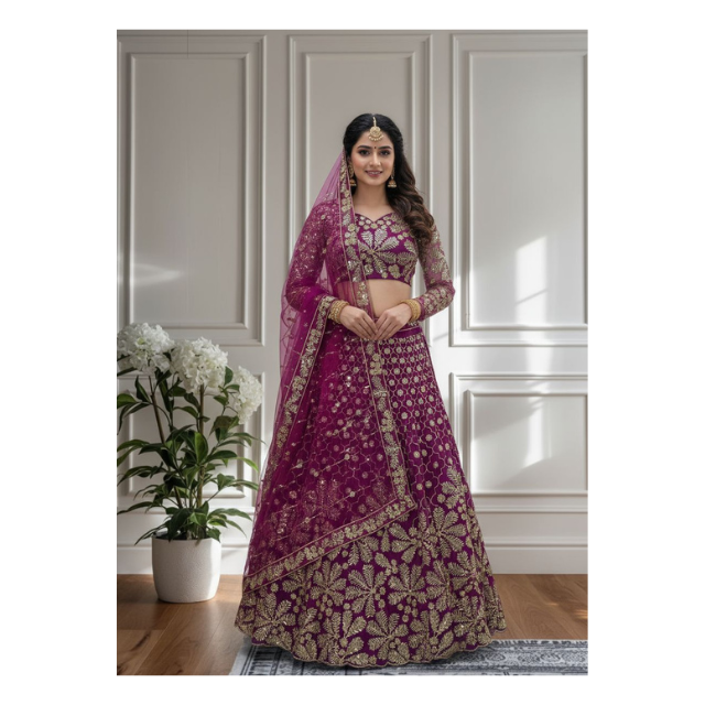 Lehenga choli นักออกแบบที่มีเลื่อมและงานเย็บปักถักร้อย zari เหมาะสำหรับงานแต่งงานและงานเฉลิมฉลองแบบดั้งเดิม