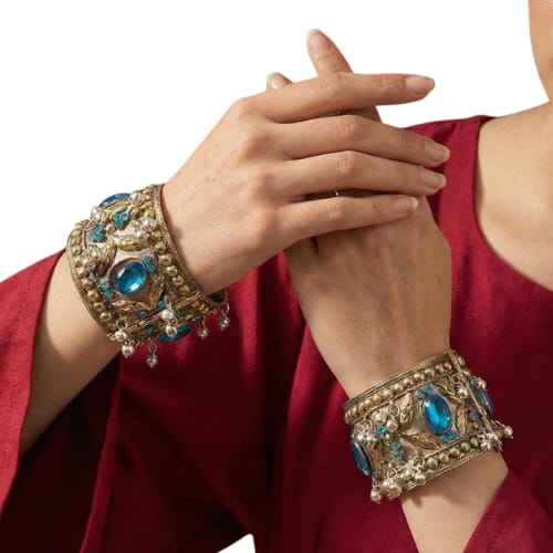 ชุดเครื่องประดับมือทำสไตล์วินเทจแบบชนเผ่าสุดประณีต สำหรับเป็นของขวัญงานหมั้นหรืองานแต่งงาน โดดเด่นด้วยไข่มุกสีน้ำเงินเข้มรูปไข่ร้อยเป็นสาย