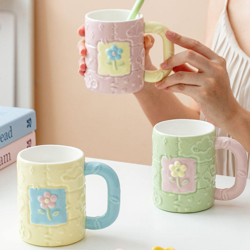 ชื่อผลิตภัณฑ์:แก้วกาแฟเซรามิกลายนูนรูปดอกไม้สวยงาม