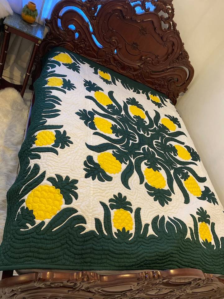 ผ้าห่มปักลายสวยงาม100% ผ้าฝ้ายแท้งานฮาวายงานฝีมือคุณภาพระดับพรีเมียมขายส่ง