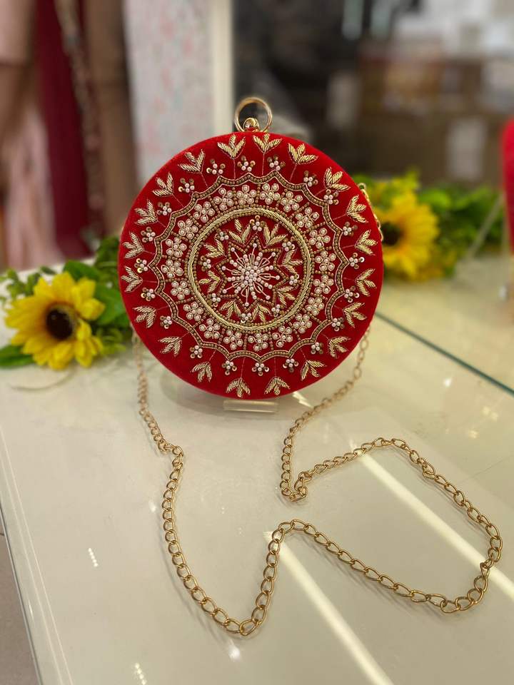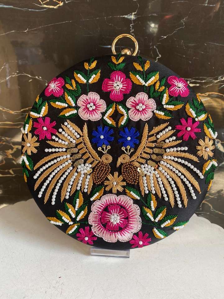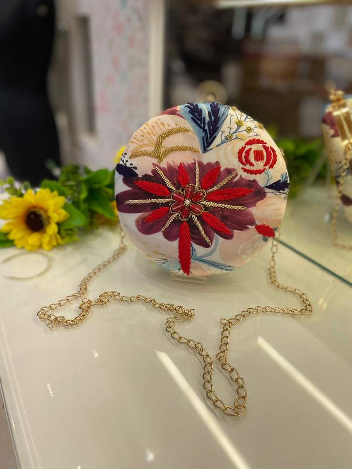 กระเป๋าคลัทช์แฮนด์เมดทรงกลมปักหรูหราสำหรับงานแต่งงานชั้นยอด